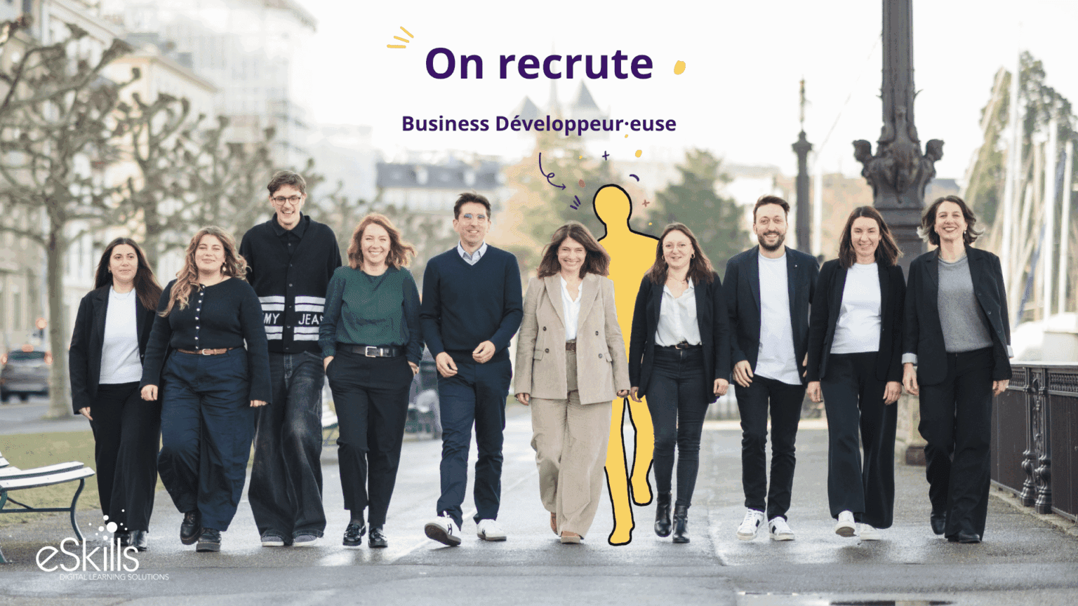 Depuis 2012, eSkills conçoit des formations e-learning sur les sujets incontournables pour les organisations : conformité, cybersécurité, durabilité, risques psychosociaux, etc. Entreprises, institutions publiques, universités et organisations internationales en Suisse nous confient le développement de leurs formations digitales sur mesure. Nous accélérons aujourd’hui le développement de notre offre sur étagère, avec l’objectif de tripler nos ventes d’ici 18 mois. C’est pour ça que nous cherchons un Business Developer dédié.
